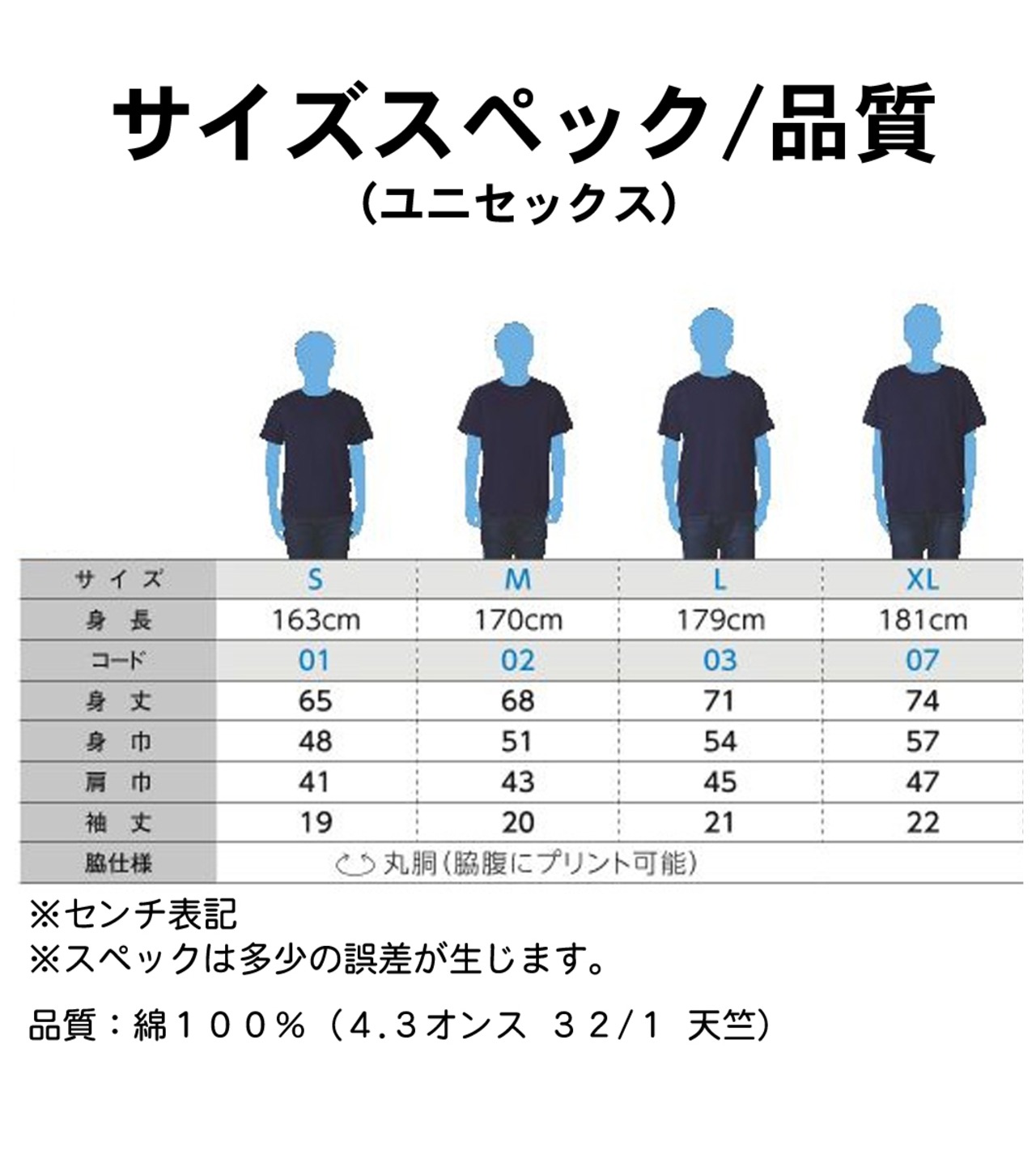 品質:綿100%(4.3oz 32/1天竺)薄手タイプ